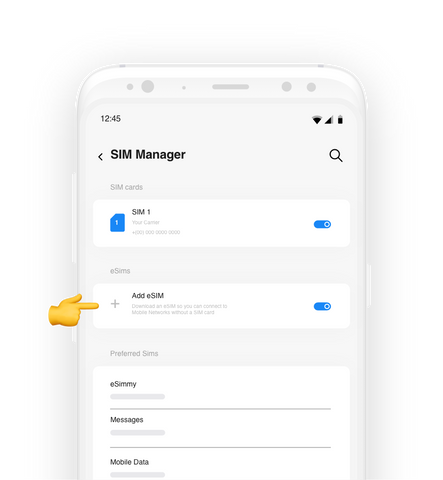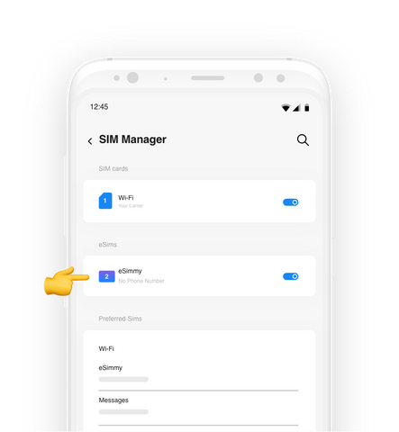 Under "Preferred SIMs", press "Mobile data" and select your new ESIMMY eSIM.